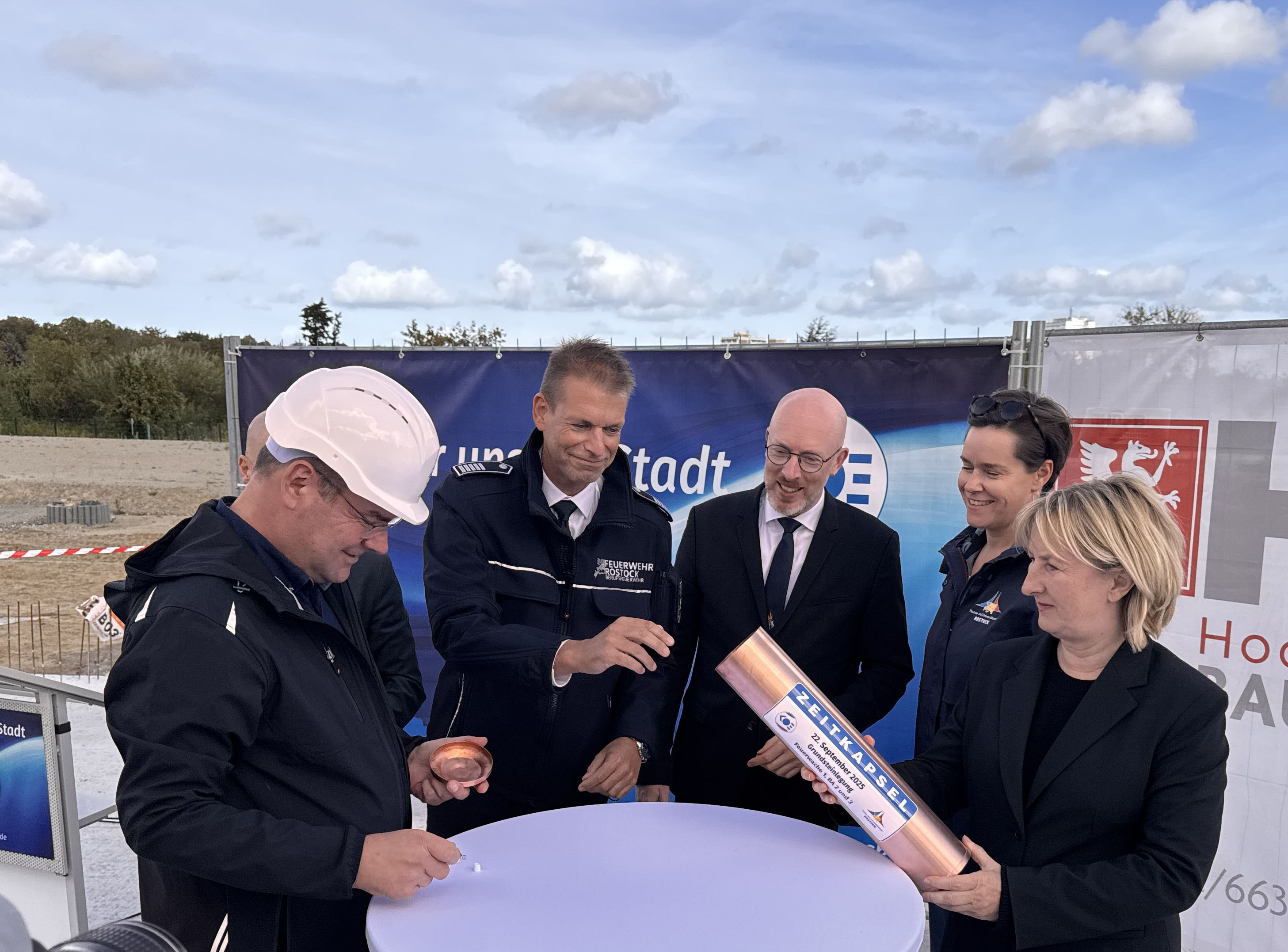 Grundsteinlegung für die Bauabschnitte 2 und 3 der Feuer- und Rettungswache 1 in Rostock