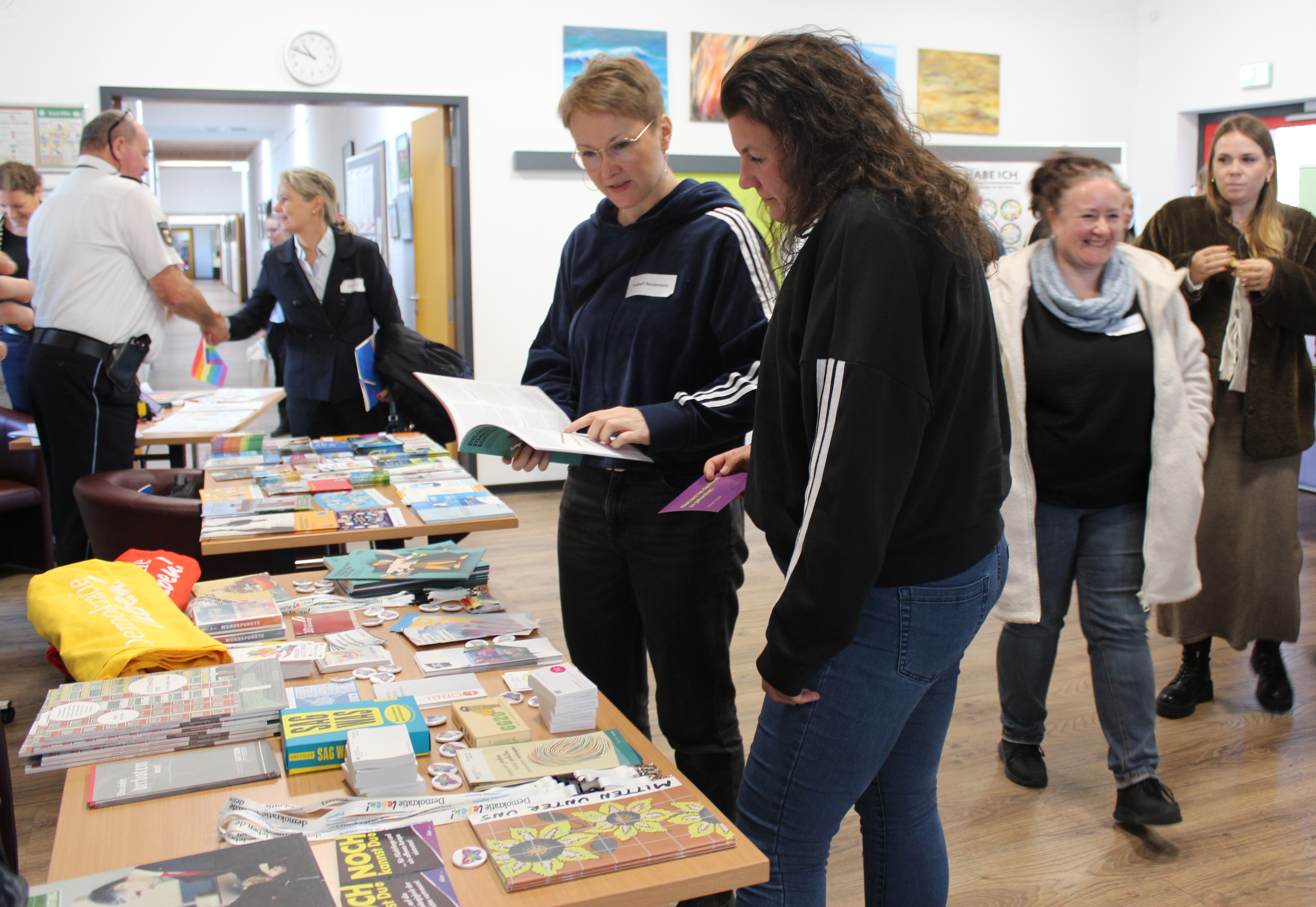 Neben den Fachvorträgen bot ein „Markt der Möglichkeiten“ Gelegenheit zum Austausch mit lokalen Partnerinnen und Partnern. Im Foyer des Stadtteil- und Begegnungszentrums präsentierten sich unter anderem der Kommunale Präventionsrat, das Büro für Bürgerbeteiligung, der Verein Rat und Tat, die Evangelische Akademie der Nordkirche sowie die Präventionsstelle der Polizei Rostock.