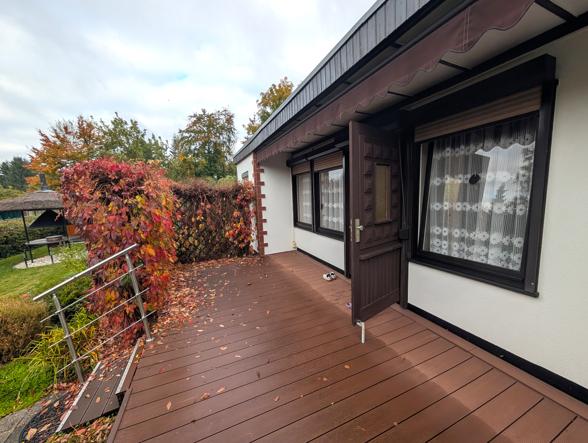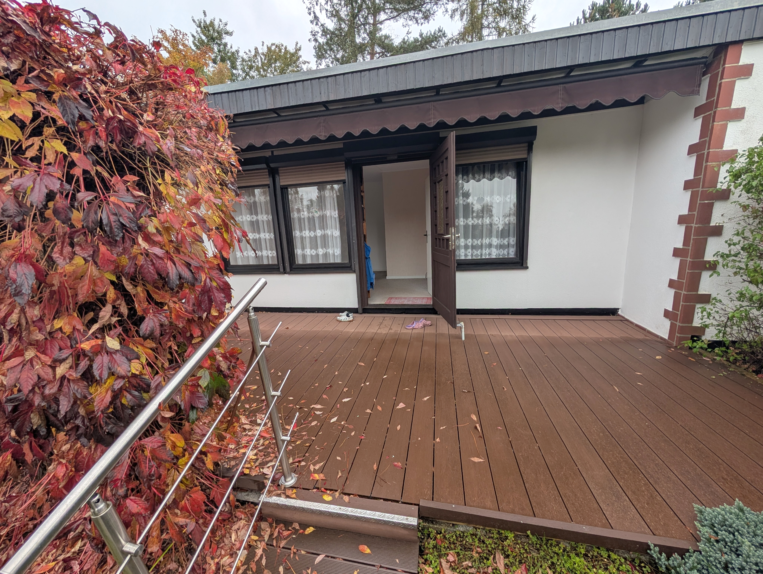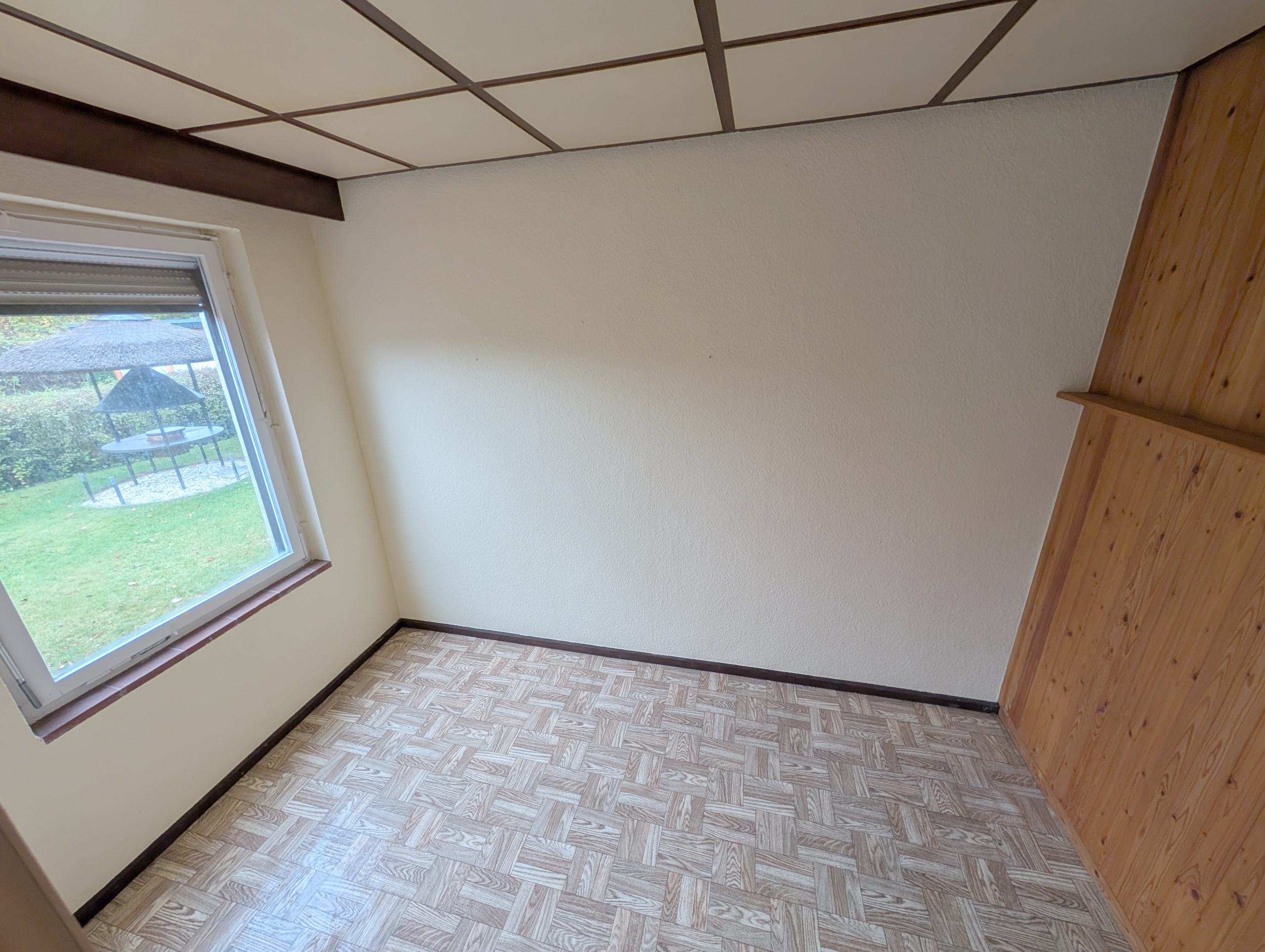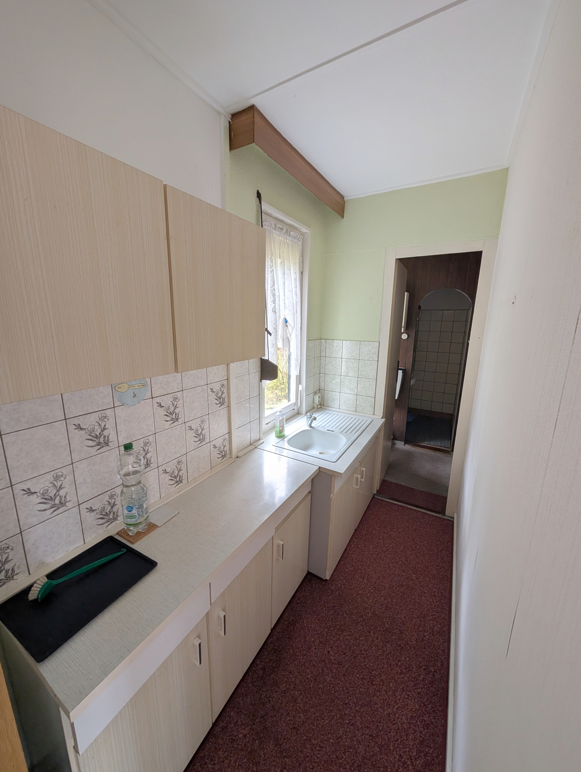 Das eingeschossige Wochenendhaus mit Flachdach, wurde ca. 1976 errichtet und hat eine Nutzfläche von ca. 43 m² und eine teilüberdachte Terrasse. Das in Holzrahmenbauweise errichtete und mit massiven Anbauten erweiterte Gebäude beinhaltet ein Wohnzimmer, ein Kinderzimmer sowie ein Schlafzimmer. Das Wochenendhaus besitzt Holzfenster mit einfacher Verglasung, aktuell ist keine Heizung vorhanden. Die Warmwasseraufbereitung erfolgt über eine Elektrotherme. Das Bad besitzt eine Dusche, ein Stand-WC und ein Waschbecken. Eine kleine Einbauküche ist vorhanden. An der Rückseite des Objektes befindet sich ein Hauswirtschaftsraum. Das Gebäude wurde in den zurückliegenden Jahren nicht wesentlich modernisiert, jedoch laufend instandgehalten. Der Anschluss des Mietgrundstückes an das Breitbandnetz wurde bereits vorbereitet. Mit dem Erwerb des Wochenendhauses werden ebenfalls ein Holzschuppen, ein Grillplatz sowie die Anpflanzungen, Einfriedungen und die zur Versorgung des Grundstückes notwendigen vorhandenen Versorgungsleitungen erworben.