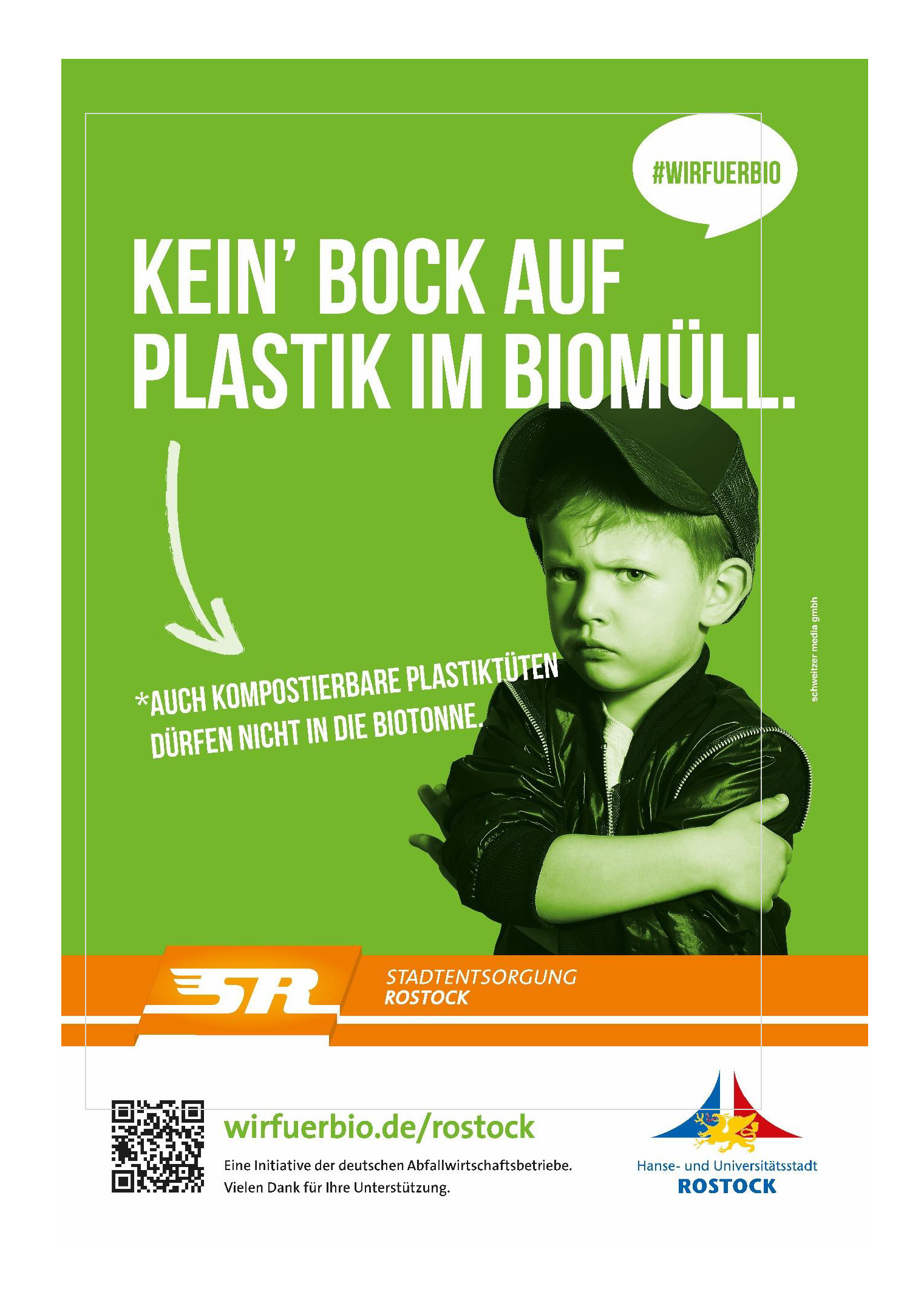 Die Kampagne #wirfuerbio ist eine bundesweite Initiative kommunaler Entsorger, die sich für mehr Sauberkeit im Bioabfall einsetzt. Nur richtig befüllte Biotonnen – also frei von Plastiktüten, Glas, Metall oder anderen Störstoffen – ermöglichen eine hochwertige Kompostierung und leisten einen wichtigen Beitrag zum Klima- und Ressourcenschutz. So auch in Rostock – hier wird der gesammelte Bioabfall im eigenen Kompostwerk in Parkentin zu wertvollem Kompost für die Landwirtschaft verarbeitet.