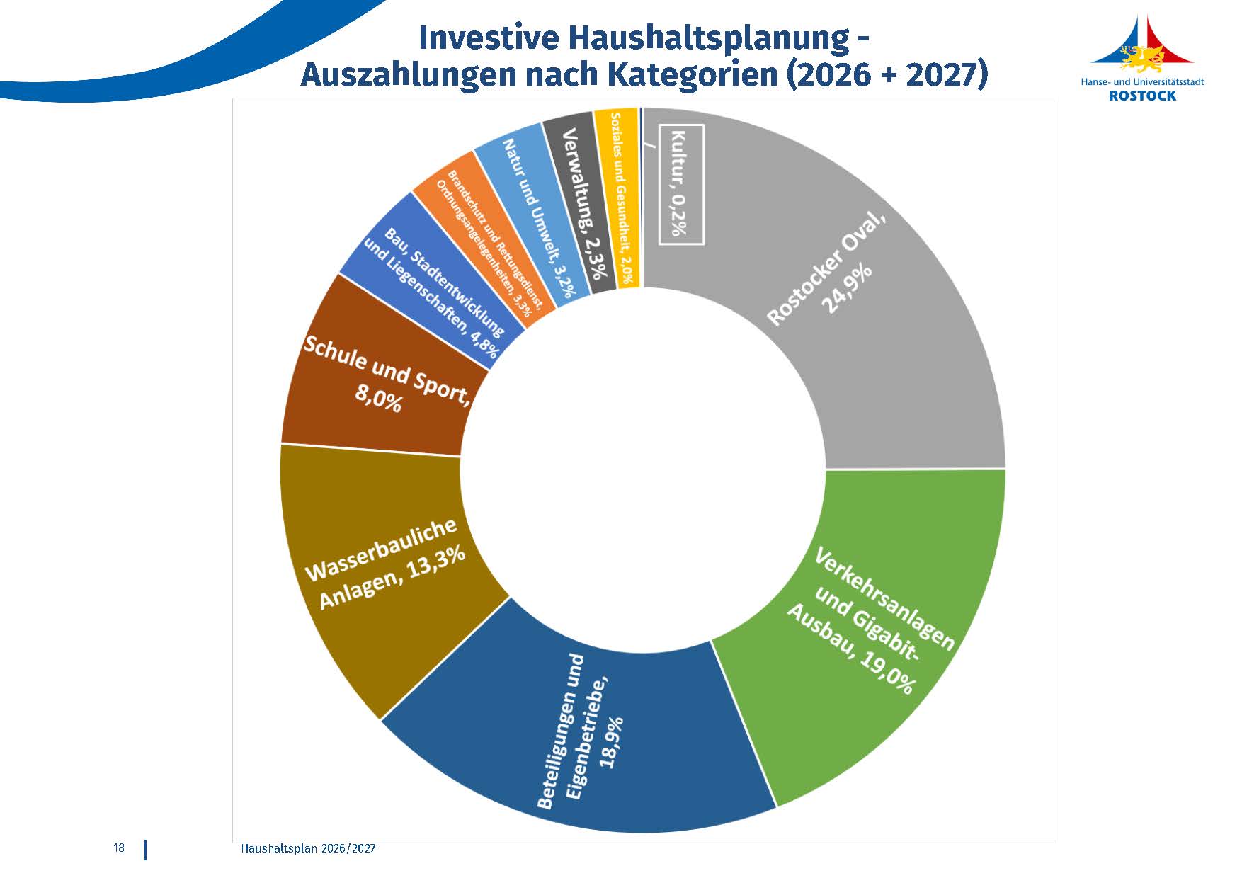 Die Stadtverwaltung hat heute den Entwurf des Doppelhaushaltes 2026/2027 den Mitgliedern der Bürgerschaft vorgestellt. In den kommenden Wochen wird das umfassende Zahlenwerk in elf Fachausschüssen sowie allen 19 Ortsbeiräten beraten. Die abschließende Erörterung und Beschlussfassung in der Rostocker Bürgerschaft ist für den 10. Dezember 2025 vorgesehen.