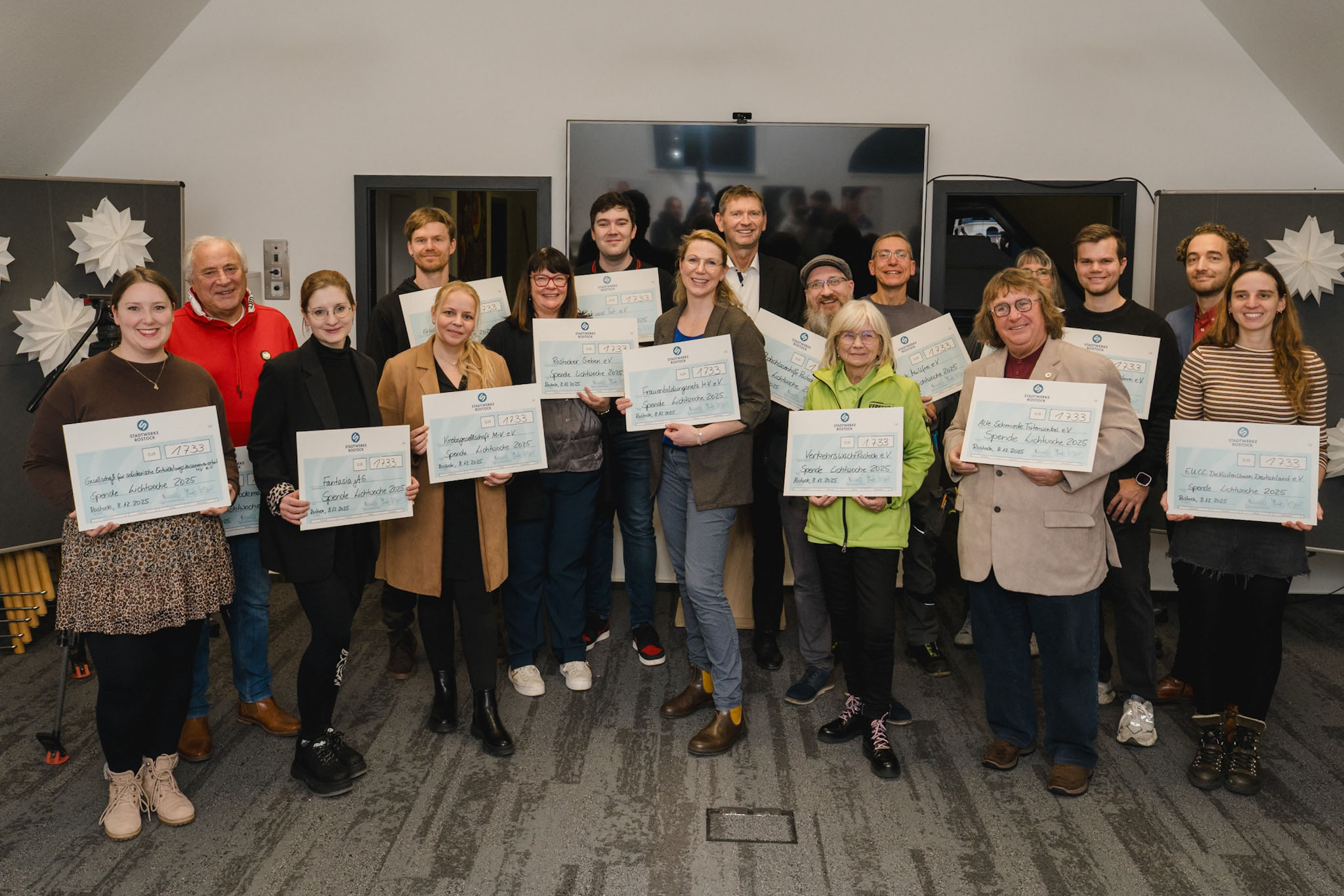 15 Vereine haben am 8. Dezember 2025 von den Stadtwerken die Spendensumme aus dem Heißgetränkeverkauf der diesjährigen Lichtwoche erhalten. Um die Leistungen und das Engagement der Vereine zu würdigen, lud der Energiedienstleister die Vertreterinnen und Vertreter in das Haus der Stadtwerke in der Kröpeliner Straße ein.